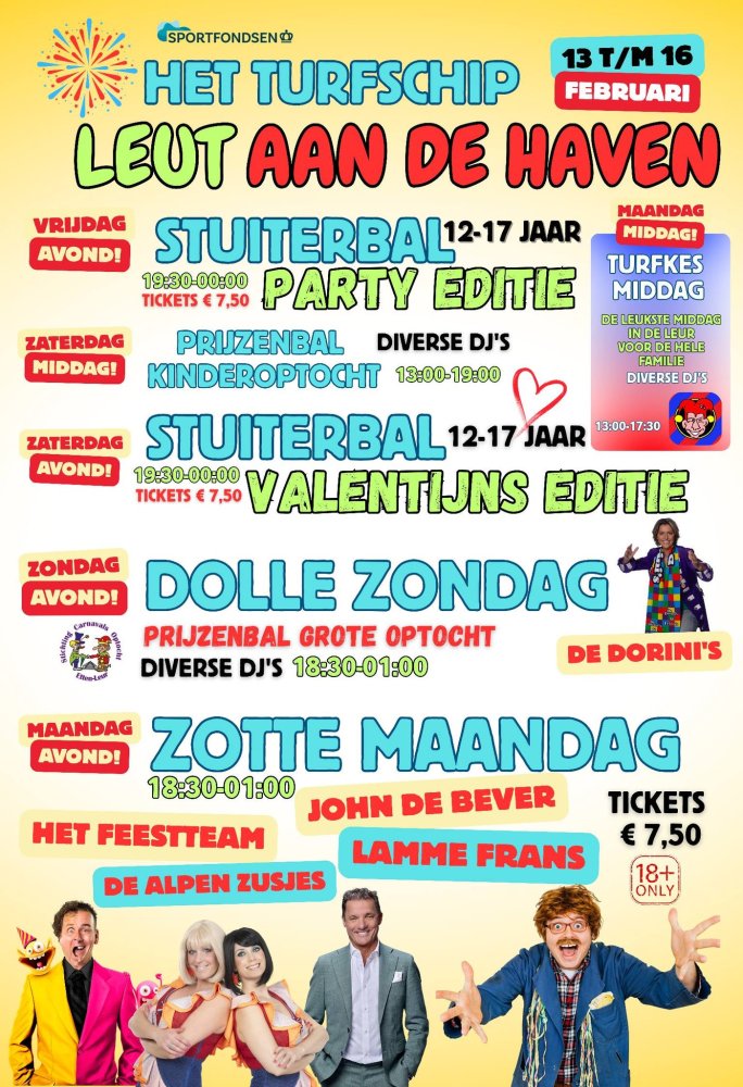 - Onder het motto Leut aan de Haven presenteert Het Turfschip dit jaar een zeer uitgebreid programma! Voor een aantal activiteiten zijn er kaarten in de verkoop. Tickets>>