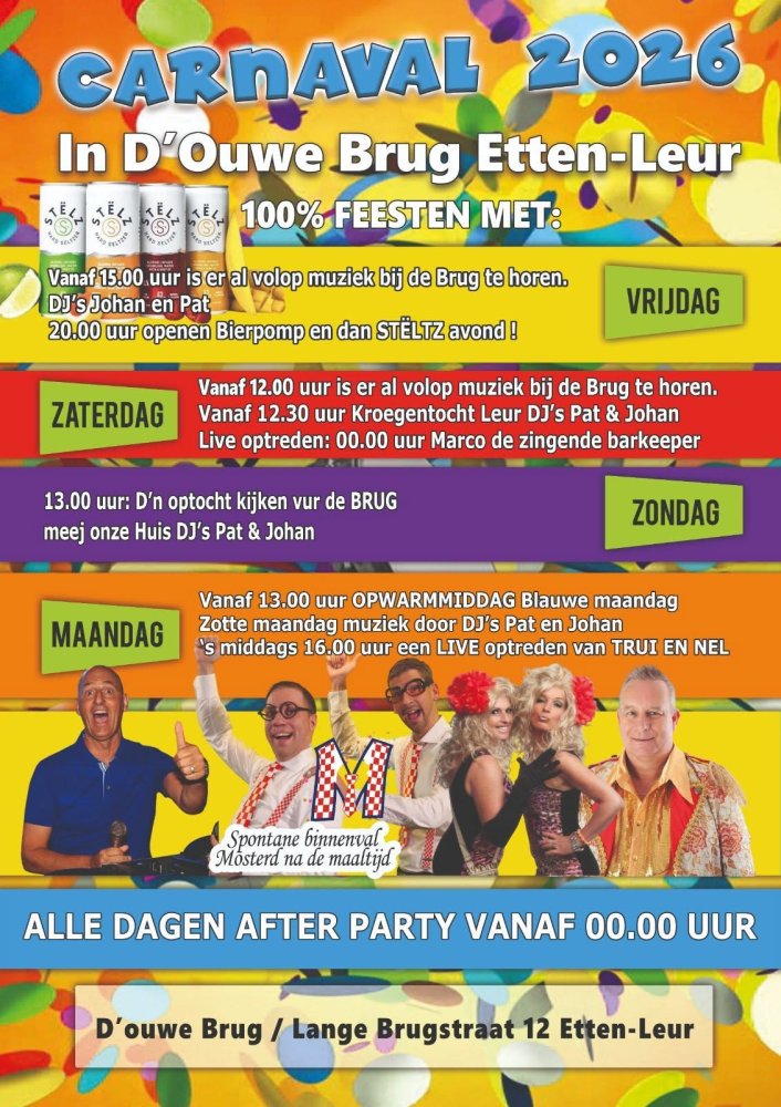 - Zondag 15 februari: Grote optocht van Etten naar Leur, start om 13.00. Lees meer>>