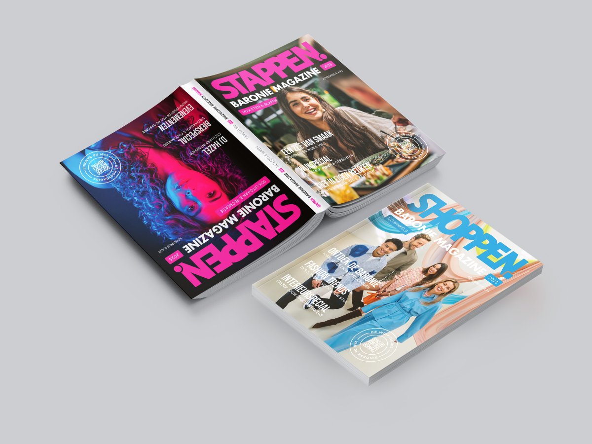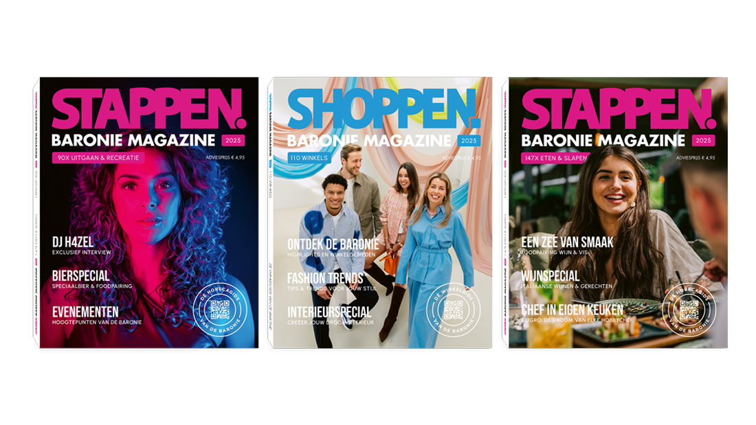 In het Stappen Magazine 2025 vind je ruim 286 lunchrooms, koffietentjes, cafés, restaurants en hotels. In het Shoppen Magazine 2025 zijn alle winkelgebieden en 242 winkels uitgelicht. Daarnaast kun je meer lezen over de hotspots van de Baronie en verschillende leuke specials!