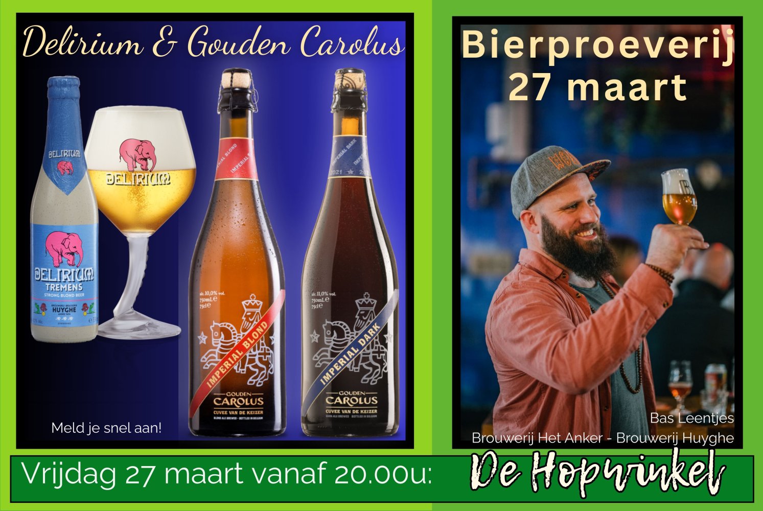 Bas Leentjes van Brouwerij Het Anker komt deze bierproefavond presenteren en kan uuuuuren vertellen, niet alleen over deze heerlijke bieren, maar ook over alles van Delirium, van Brouwerij Huyghe.