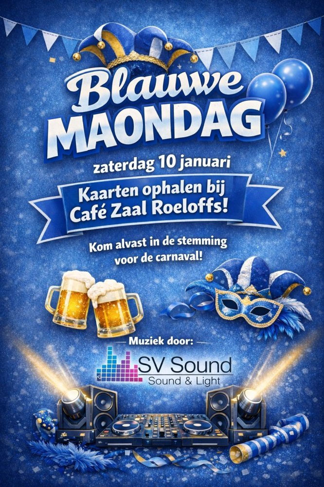 Op 16 februari is het Blauwe Maondag bij Leut op ut Plein. Het feest is helemaal uitverkocht. Deze zaterdag vanaf 13.00 uur kunnen de kaarten afgehaald worden bij café Roeloffs. Ze maken er een gezellig feestje van i.s.m. SV Sound.