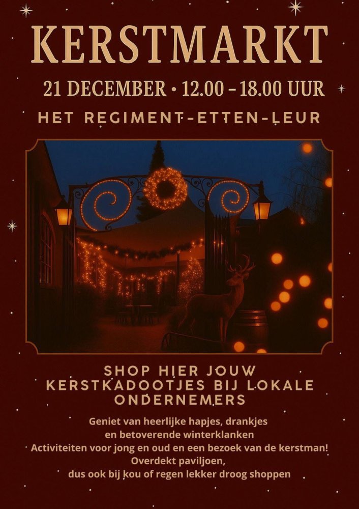 Op zondag 21 december toveren de ondernemers van het Regiment het winkel- en horecahofje om tot een knusse kerstmarkt, van 12:00 tot 18:00.