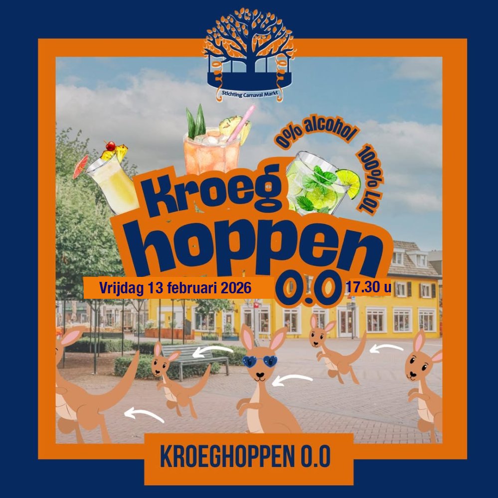 Kroeghoppen is er voor carnavalsvierders die samen op pad willen om kennis te maken met de kroegen in het Stijlorenrijk. De vorige editie bewees al dat alcohol niet nodig is voor soepele heupen en luid meezingen met carnavalskrakers. De route voert vanaf 17.30 uur langs Café The Butler, Café De Klomp, Café De Cluijs en Scandal Bar. Het programma duurt tot ongeveer 20.00 uur en wordt afgesloten op de Markt, waar aansluitend de intocht van de Prins en Jeugdprins van het Stijlorenrijk plaatsvindt.