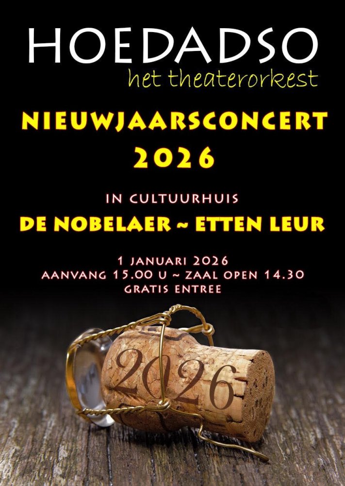 De Nobelaer en Theaterorkest Hoedadso nodigen je op 1-1-2026 uit om het nieuwe jaar feestelijk in te luiden. Tijdens het nieuwjaarsconcert, volgens traditie verzorgd door Hoedadso, willen ze graag met je proosten op het nieuwe jaar.