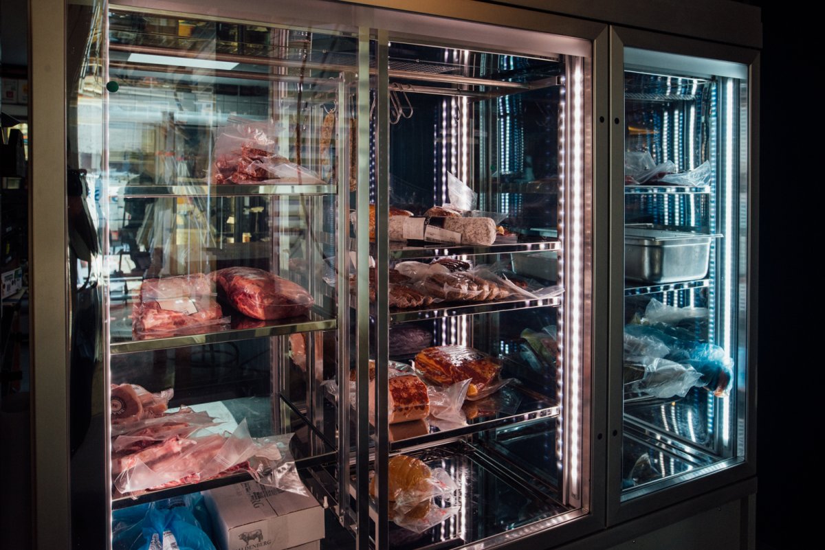 Hierboven zien jullie de dry age kast waarin alle heerlijke hammen en worsten te vinden zijn!