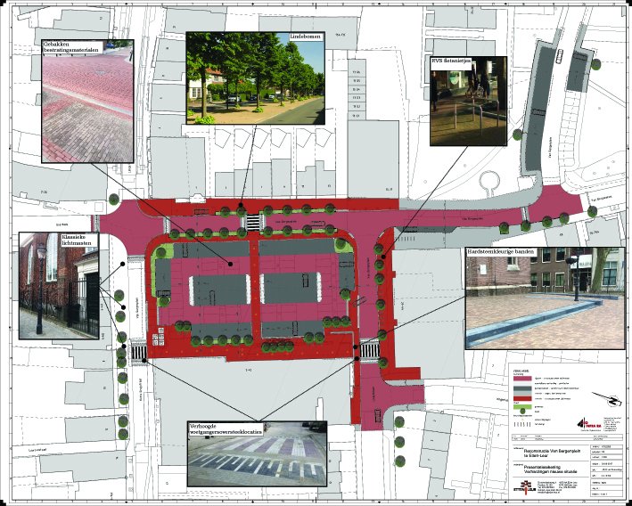 Op www.etten-leur.nl staan de presentatietekeningen onder Inwoner > Parkeren en wegwerk > Werk aan de weg en straatafsluitingen > Van Bergenplein. Aan de tekeningen kunnen geen rechten worden ontleend.